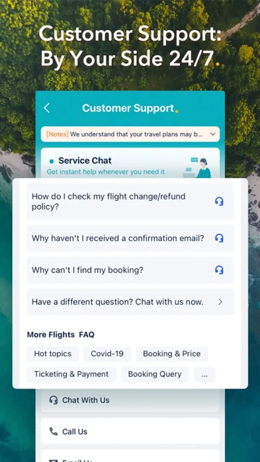 Flights to around 5,000 cities worldwide are available in the Trip.com app. Pick your preferred class – or even book a chartered flight! The Trip.com app lets you filter by price, flight duration, travel time, airline, or number of stops. Pick a multi-city itinerary, and you can even fly into one city and out of another. With Trip.com it's easy to find your perfect flight.