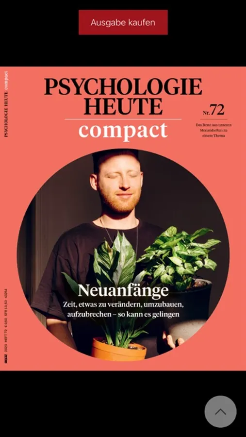 Psychologie Heute is the magazine for all who want to get a better understanding about themselves and others. Every month you will find in Psychologie Heute the latest news about the big issues of life: happiness and self-development, work and career, love and partnership, body and well-being, personality and childhood, education and training. We also report every month on the findings from psychological research and from the health and social sciences and present new publications on the book market. Also four times a year appear Special Topics - the compact–Special-Issues on topics such as knowledge of human nature, stress management or partnership.