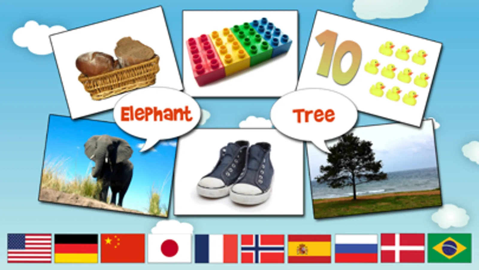 The app can also be used for learning other languages by selecting a different languages in the settings menu. The app contains 10 different languages. Use this feature to help your child in learning common foreign languages such as Spanish, French, Japanese, Chinese or Russian. The free app contains 10 different flashcards. The full version with 100 words / images can be purchased inside the app.