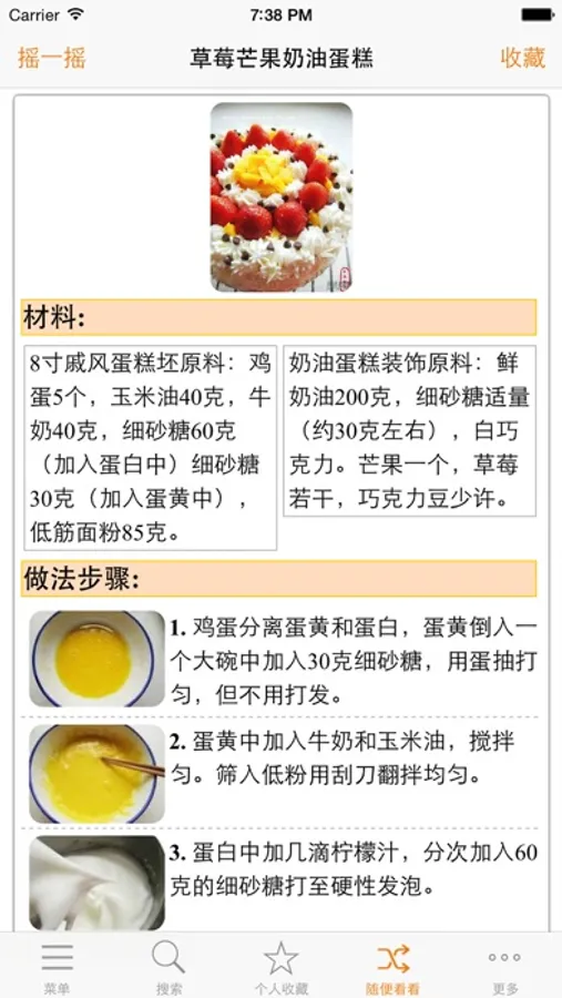 最全最流畅的蛋糕做法大全,一次下载,所有信息离线使用。所有IOS设备通用,支持一键收藏,摇一摇随机查看,全文搜索。