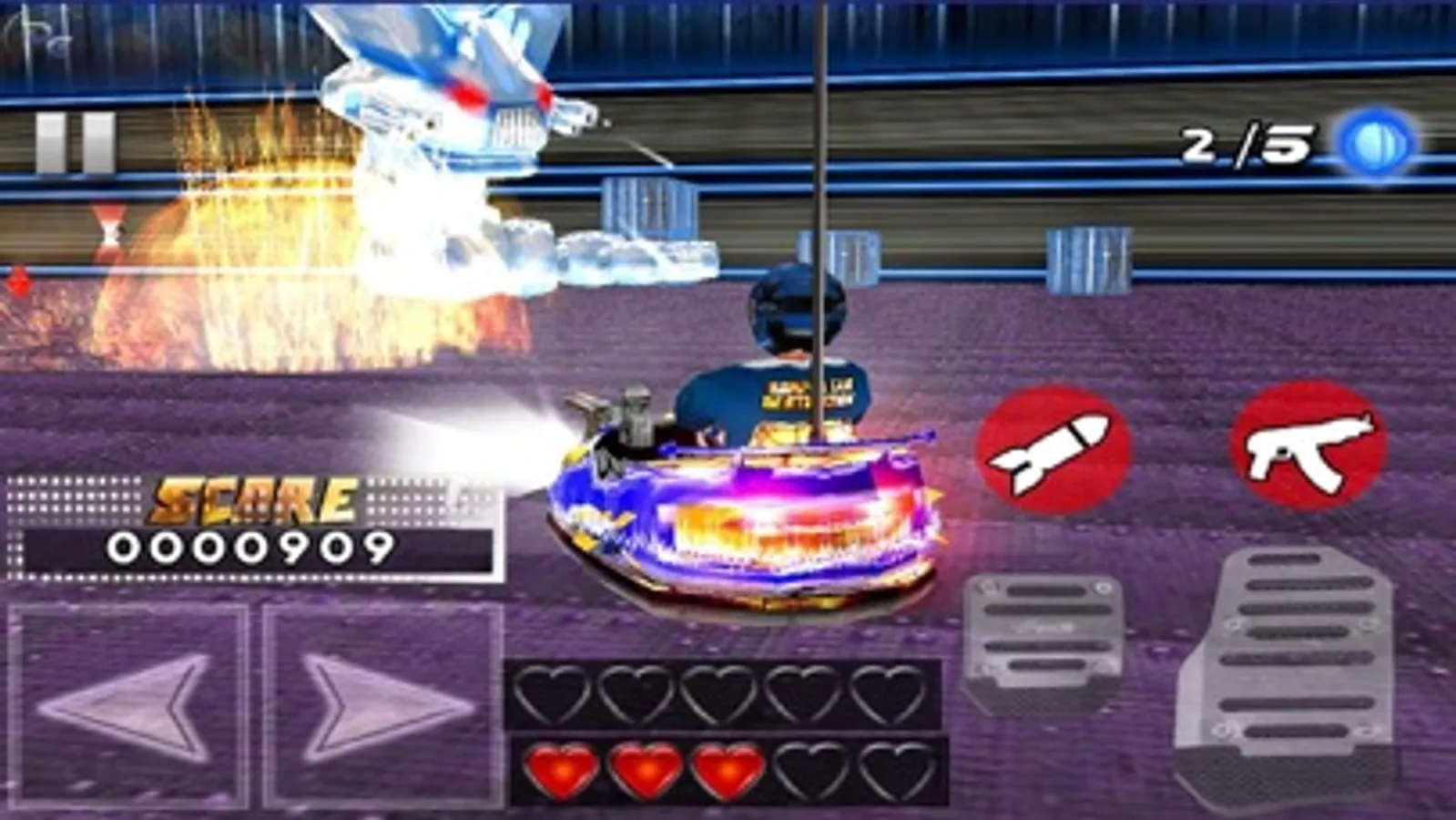 "Bumper Car Destruction" is a game where you must eliminate the opponents by striking them with your bumper car.