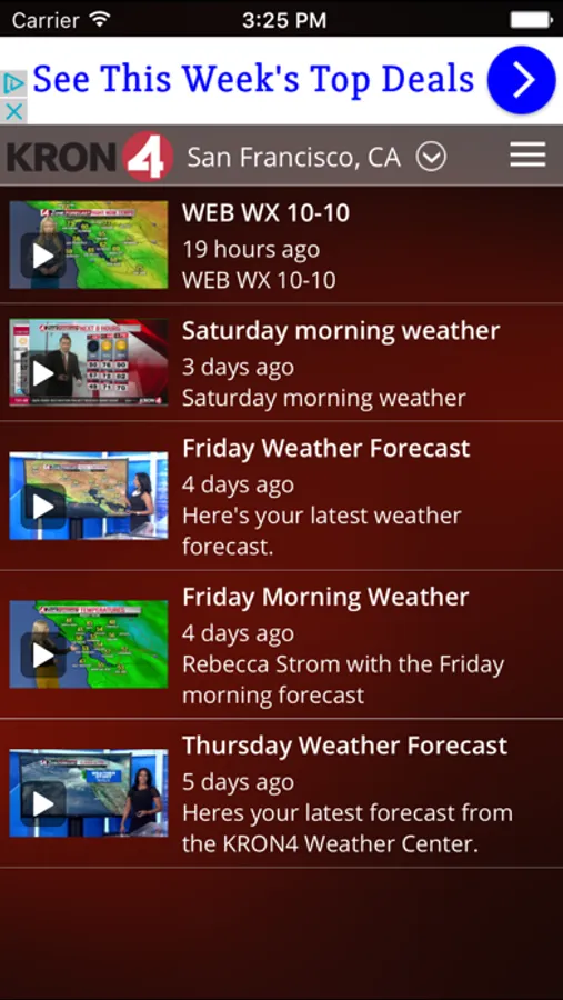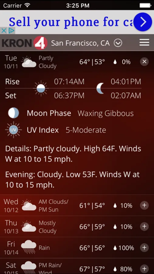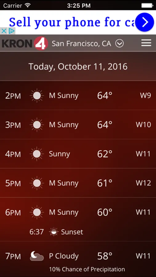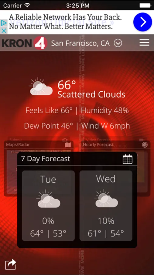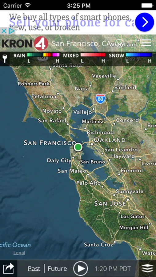 Download the KRON4 Weather app for fast, accurate local and national weather at your fingertips. With its personal alert notifications, you'll know when significant weather is heading your way and when to take cover. And when you are traveling, use KRON4 Weather to get real-time weather forecasts, interactive radar and current conditions for anywhere in the U.S.