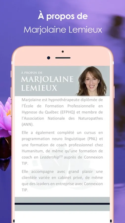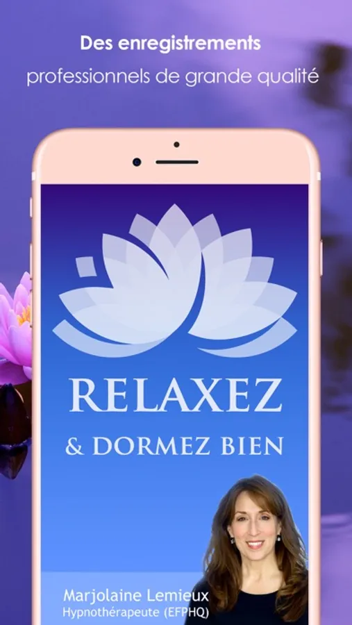 Relaxez et dormez bien est une APP avec achats intégrés et une ressource de mieux-être pour la francophonie. Cette App comprend 3 séances et plus de 31 séances d’autohypnose et de méditation de grande qualité, guidées en français par Marjolaine Lemieux, conçues pour favoriser le sommeil profond, calmer l’anxiété, permettre la relaxation, ressentir la gratitude, augmenter l’estime de soi et plus encore.