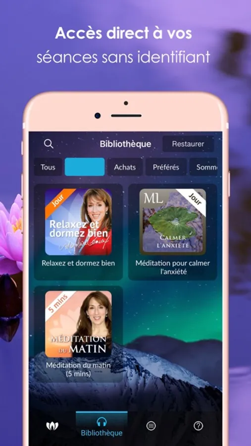 • L’accès à plus de 26 séances de méditation et d’autohypnose de durées variées, d’une qualité exceptionnelle.