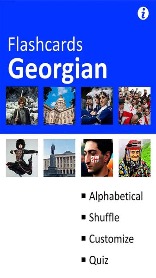 This app is for those who are interested in learning Georgian (Mkhedruli) alphabet and pronunciation. The front side of the card displays a Georgian alphabet. The back of the card displays the pronunciation and a mnemonic clue. Ideal for beginners who wants to learn Georgian in an easy way.