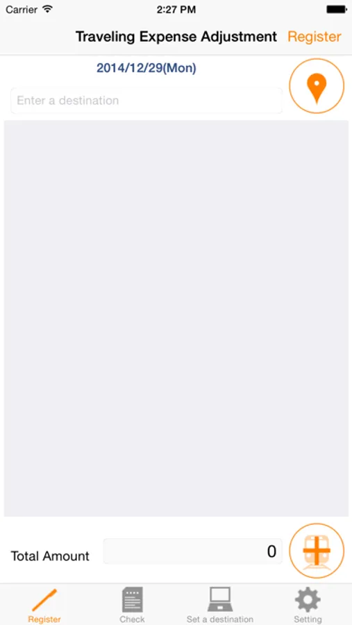 Traveling expense is automatically displayed by selecting "Destination", and you just touch "Enter" button to adjust the expense.