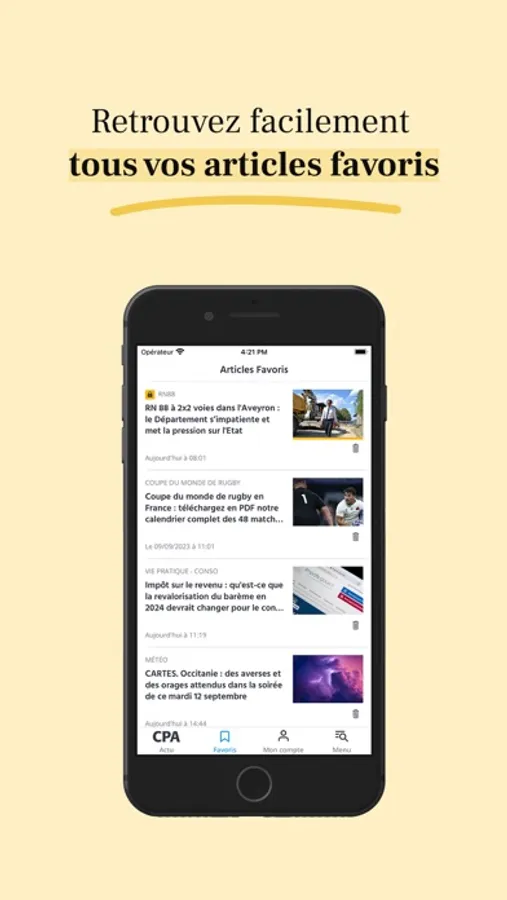 - Favoris : pour accéder facilement aux articles que vous avez appréciés ou que vous souhaitez lire à un autre moment de la journée