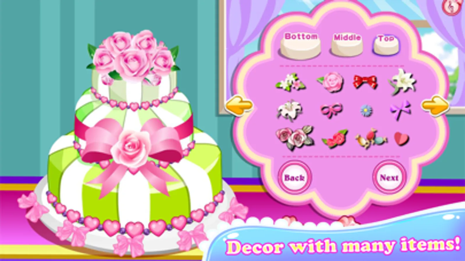 The Rose Wedding Cake is a fun and adorable wedding cake cooking game that gives you a chance to create your own dream wedding cake that would look beautiful on the table in front of your guests. With so many different designs and colours to choose from you can really make your wedding cake stand out.