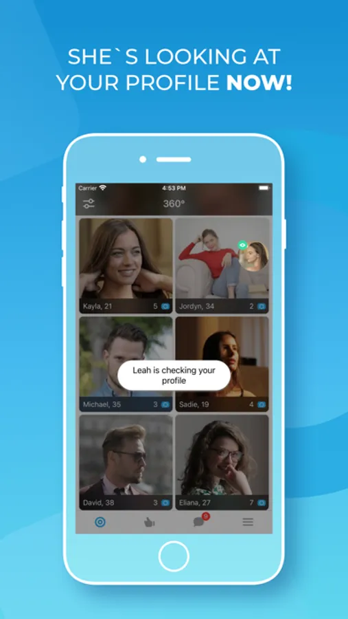 Use the 360* to find people based on their distance from you, or use the “Like” to see people that we think are good for you.