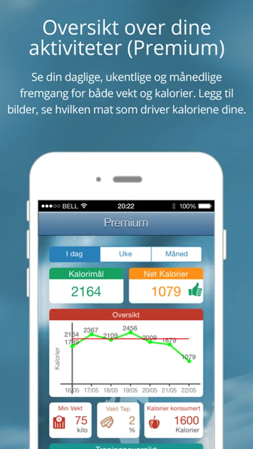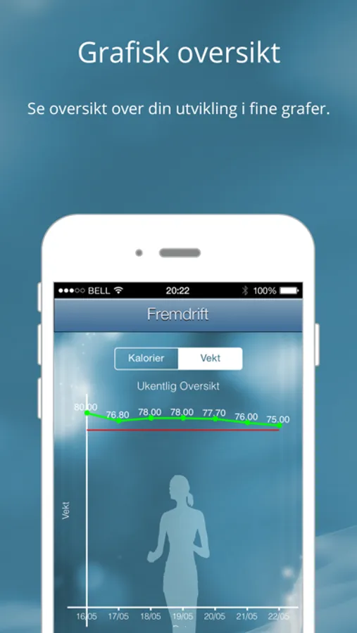 Kaloritelleren kommer også med en fin graf funksjon som du kan tracke fremgangen din uke for uke og måned for måned.
