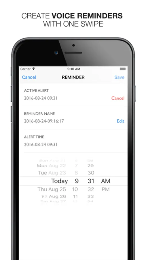 • QUICK REMINDERS - set reminders to go off within the next 60 minutes with one swipe.