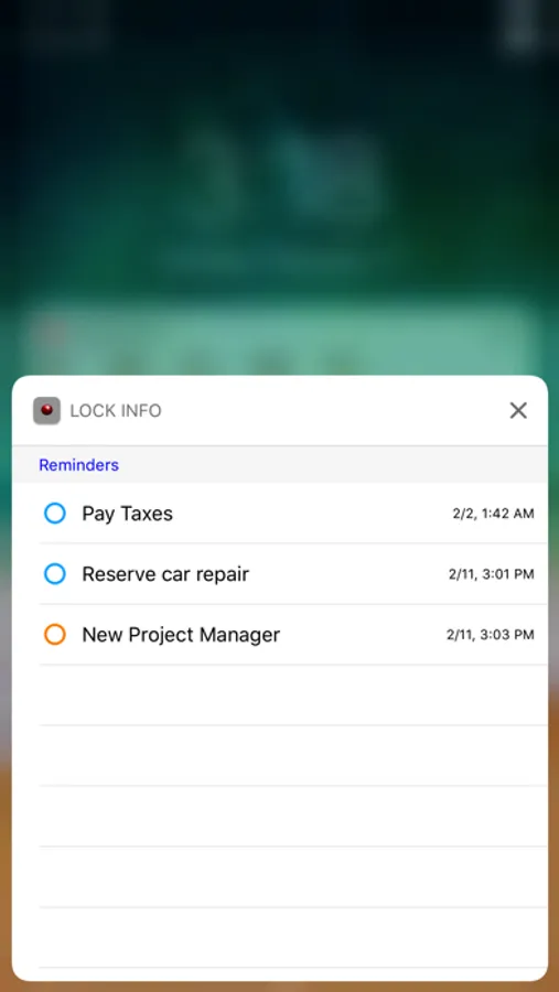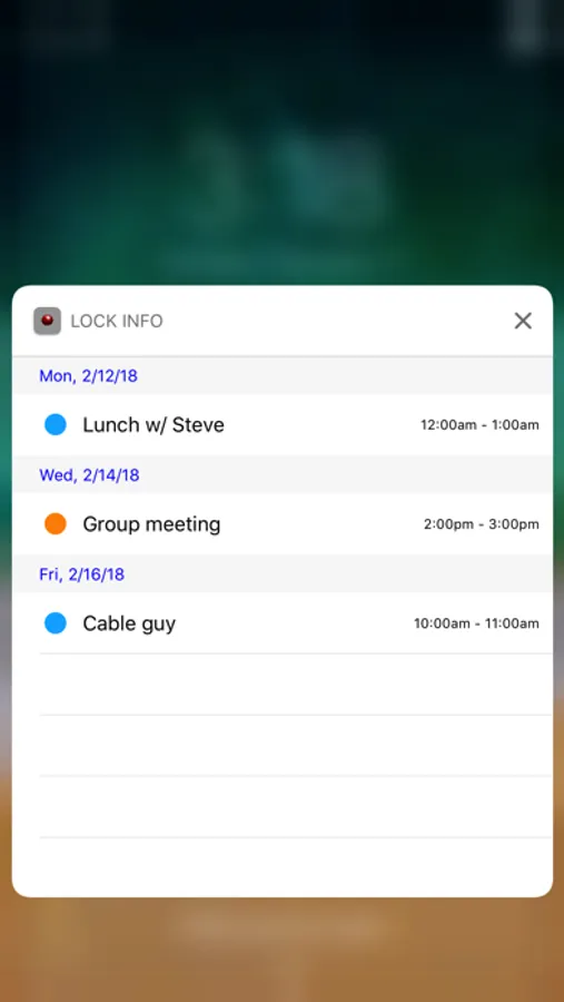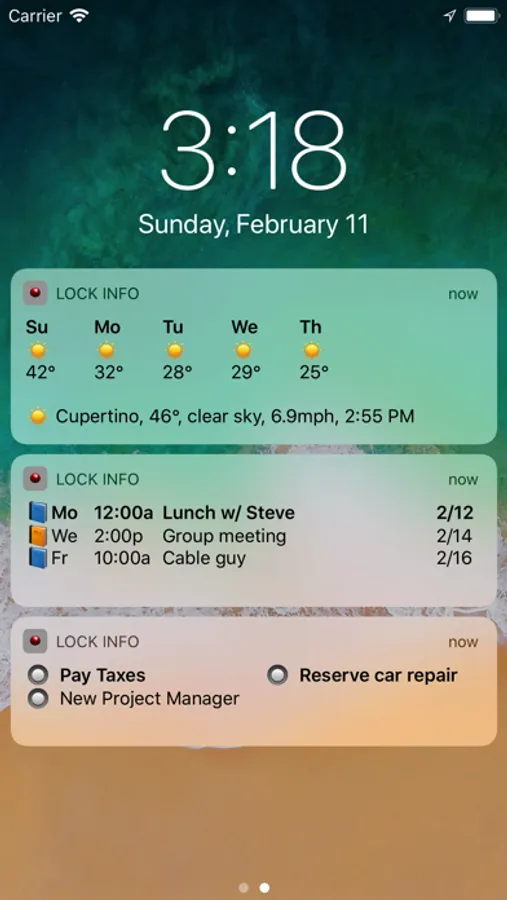 Lock Info keeps your reminders, calendar events, and weather on the lock screen, automatically.