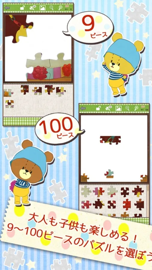 As the number of pieces can be selected from 9 to 100 pieces, both adults and children can enjoy it!