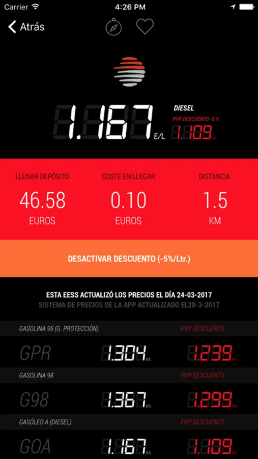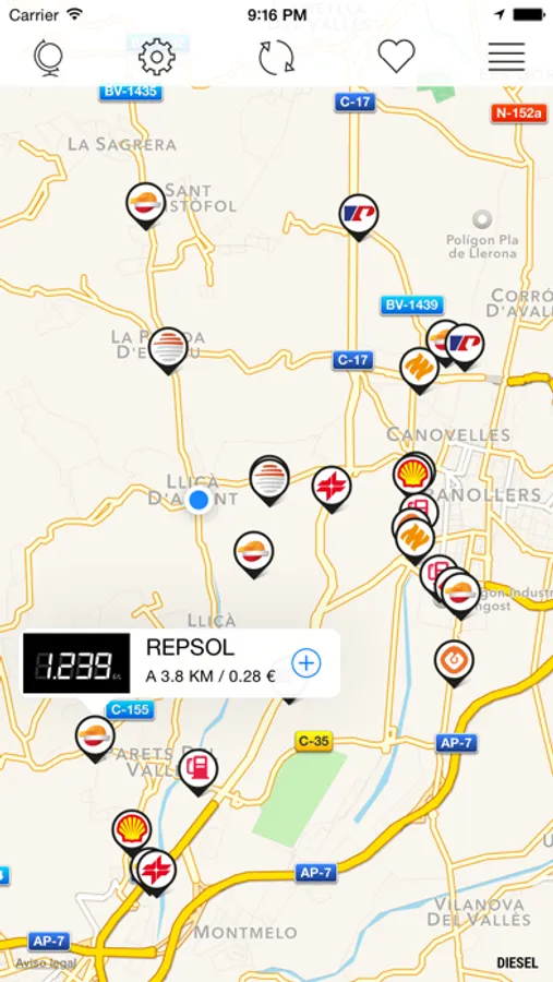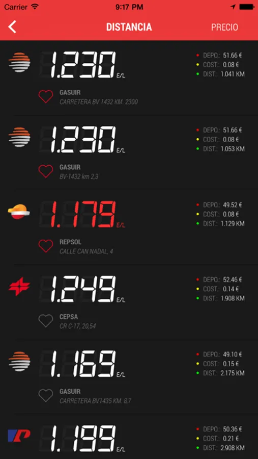 - LISTADO DE FAVORITAS: Guarda tus gasolineras favoritas para poder compararlas o agilizar tu consulta.