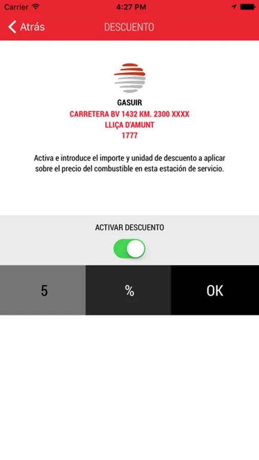· Configurador de redes de gasolineras: Filtra por marcas de gasolineras y aplícales un descuento en el precio del litro.