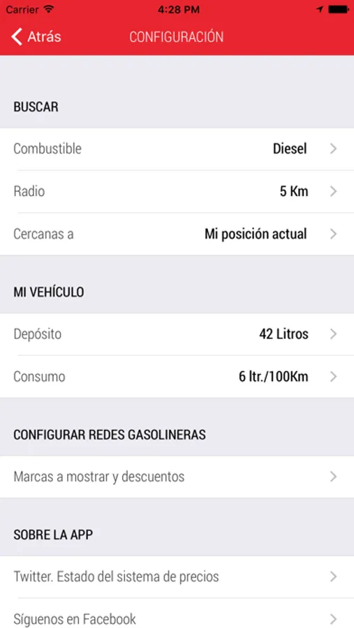 · Estado del sistema de precios vía Twitter (https://twitter.com/gasolineras_app).