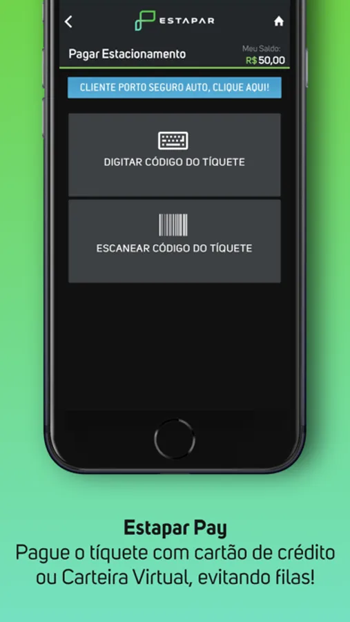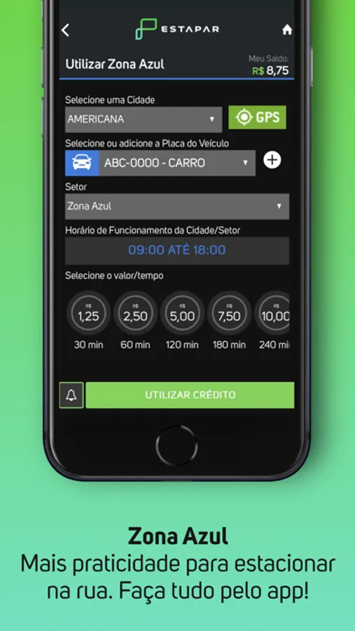 Compre créditos e use em vários serviços disponíveis no app, como: estacionar, reservar uma vaga em arena, estádio ou aeroporto, se tornar mensalista e, claro, pagar ou renovar ticket do estacionamento.