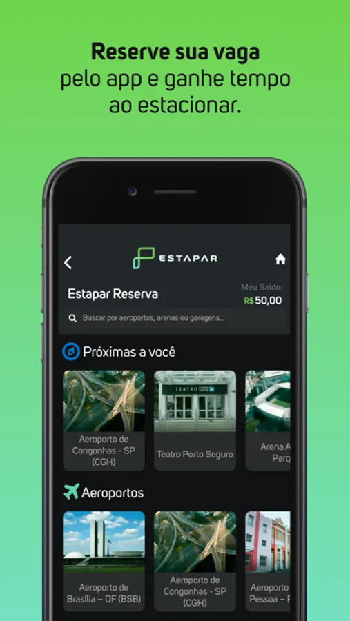 Faça sua Estapar Reserva pelo app e tenha mais segurança na sua viagem e em momentos importantes! Ir de carro ao aeroporto ou a arena e estacioná-lo ter a sua vaga reservada é a combinação ideal de economia, conveniência e segurança. Pague sua vaga pelo app e evite pegar filas, marque a posição do seu carro e encontre a vaga mais próxima e ideal para você, sem burocracias e sem multas!
