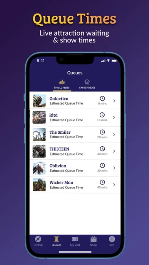 Ride Times – Find out the current waiting time for your favourite rides & attractions.