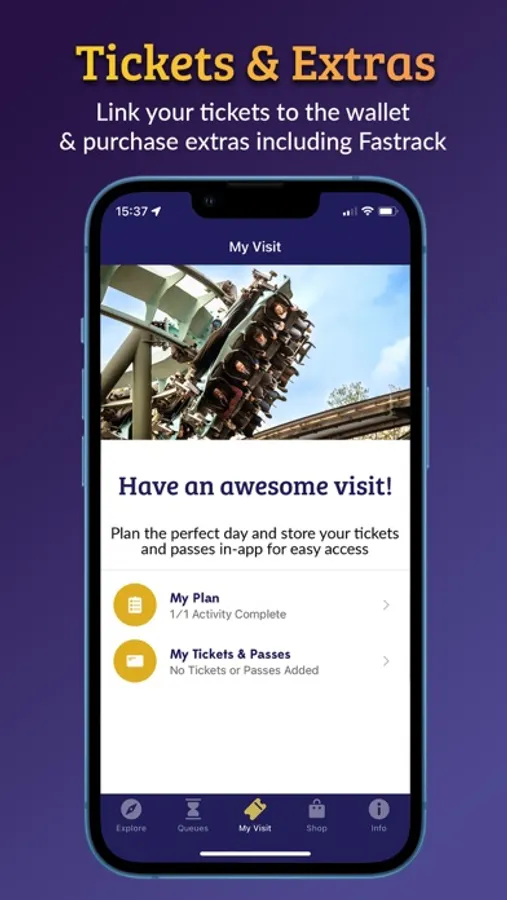 Plan your visit – Purchase tickets, fastrack & more in just a few taps then access them via the digital ticket wallet.