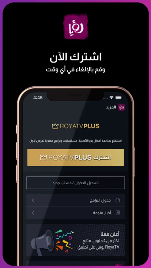 Roya TV Plus Streaming app is home for exclusive series and programs hits, Roya TV Originals and premium, so much more. Entertainment shows? Yes! All the entertainment you and your family need, in one place, for one great price, on one easy-to-use app.