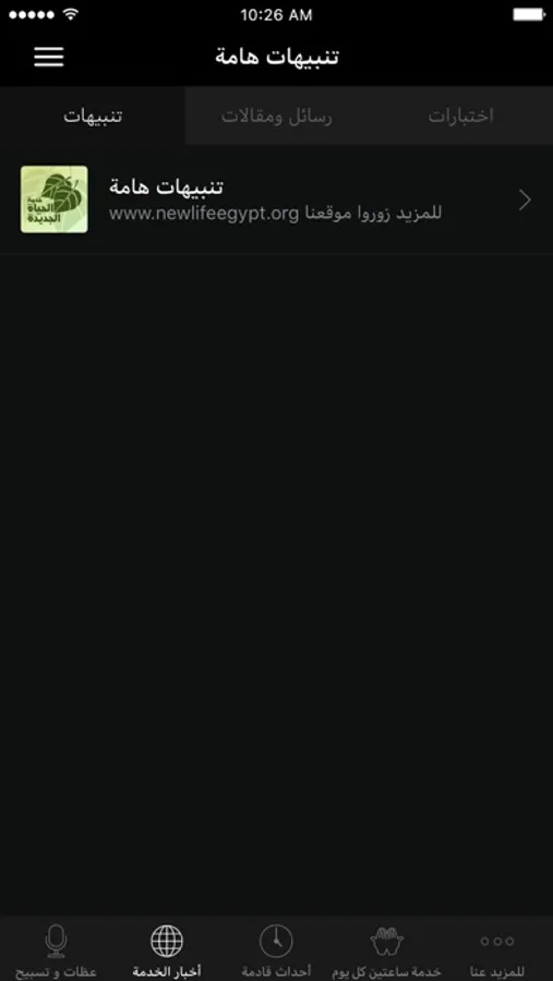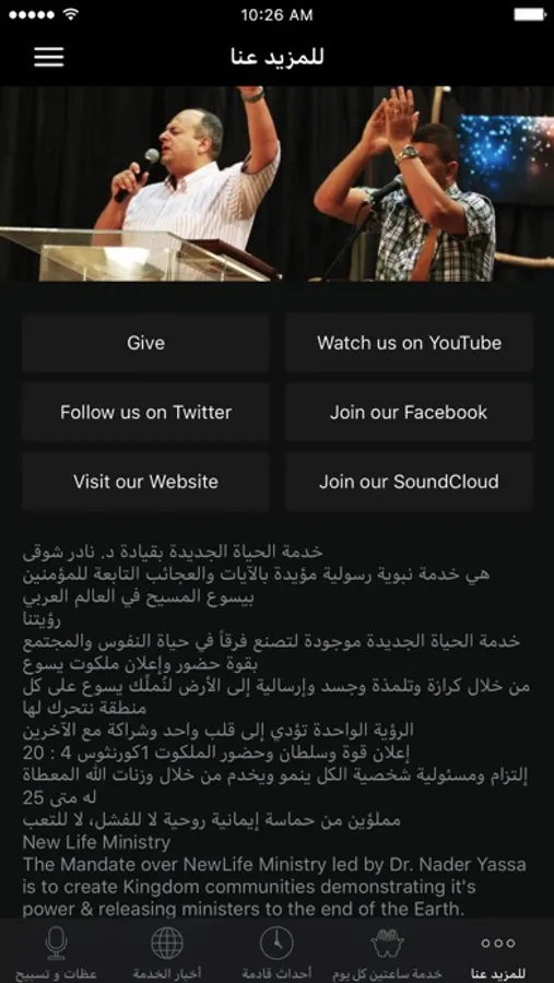 The New Life Ministry Egypt App was created with the Subsplash App Platform.