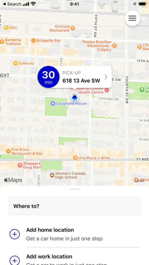 • You can also tap a location on a map, or type in a pick-up address.