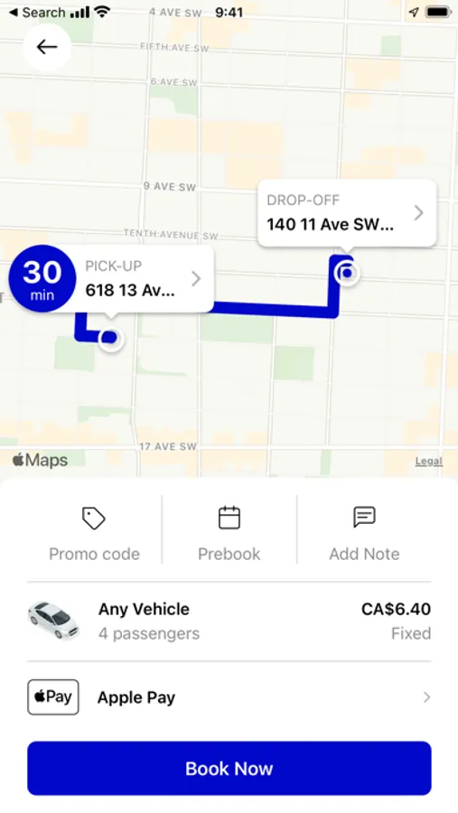 • Select booking options for your cab (wheelchair accessible, pet-friendly, etc.)