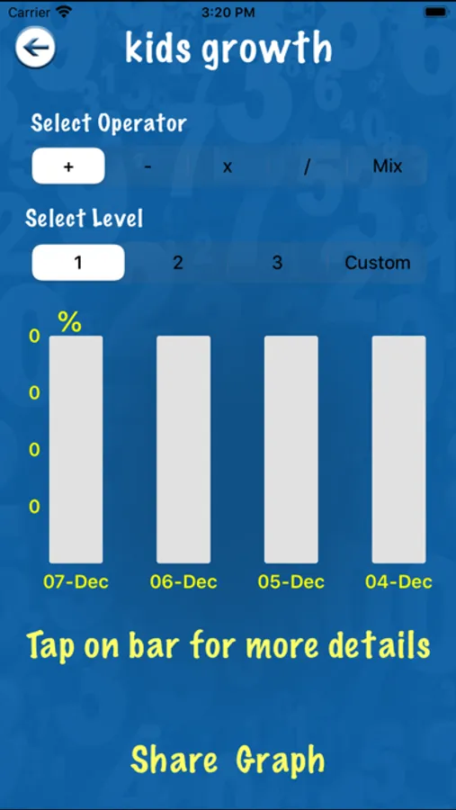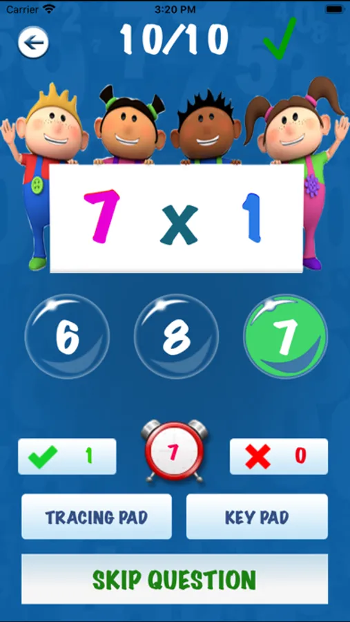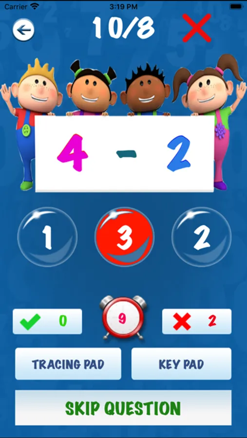 With 4 levels covering 4 math skills and an endless supply of problems.