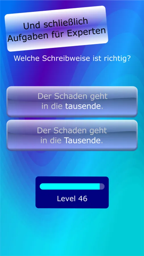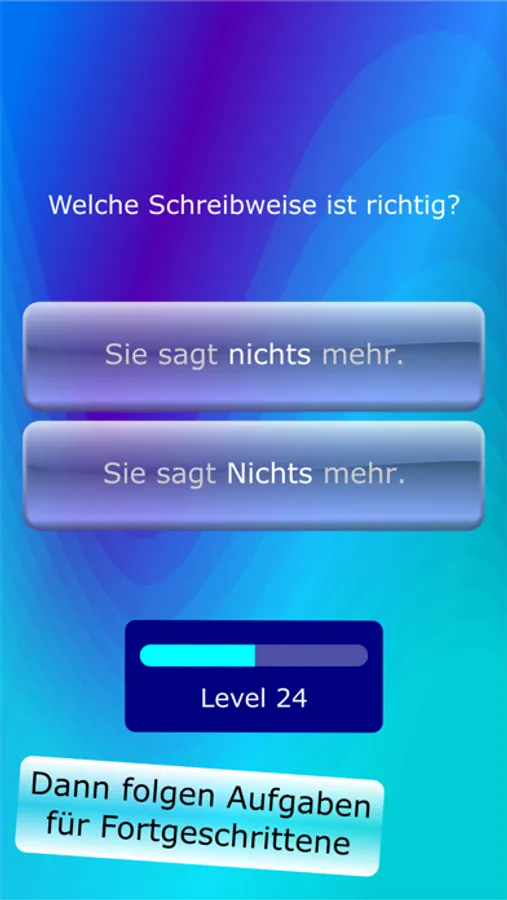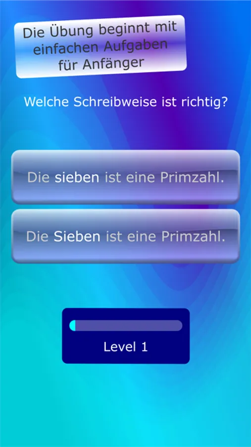 Dieser kleine Trainer wendet sich an die Fortgeschrittenen und hilft ihnen zu entdecken und zu üben, welche Wörter groß- und welche kleingeschrieben werden. Das Programm enthält über 900 Wörter ‒ klassische Zahlwörter und viele Indefinitpronomen ‒, bei denen der Lernende sich zwischen Groß- und Kleinschreibung entscheiden muss. Um die Sache grammatisch eindeutig zu machen, sind alle Wörter in komplette Sätze eingebettet.