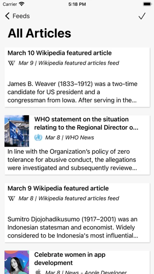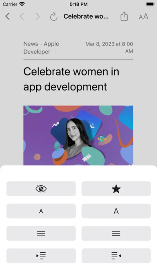 Read feeds conveniently by adjusting font size, line spacing, and margins. You can also go directly to the full web version of an article or use a built-in reader mode.