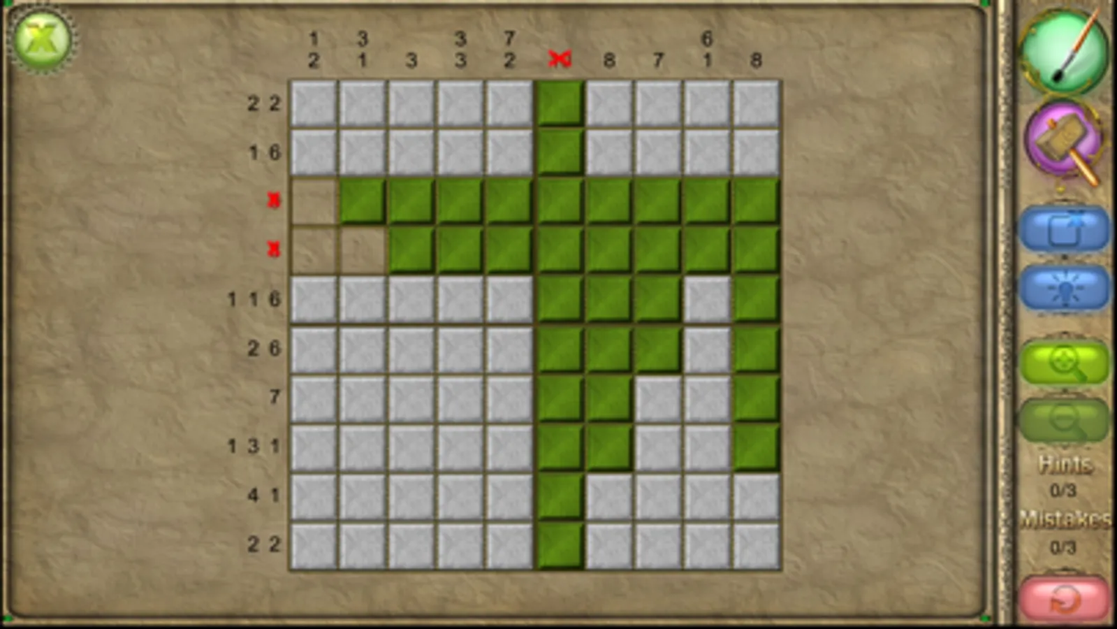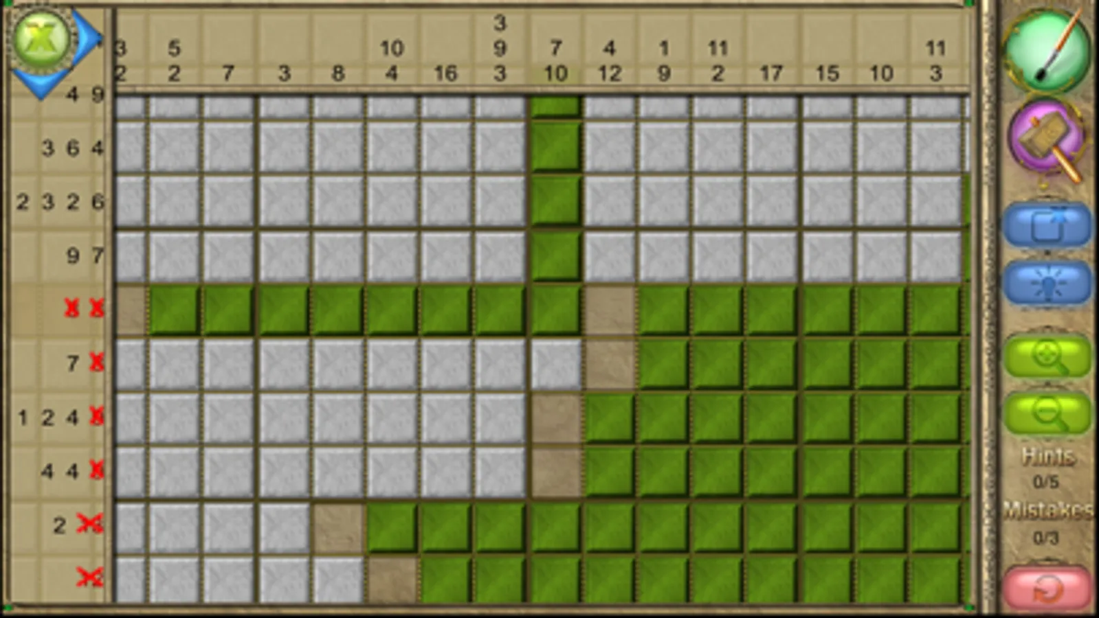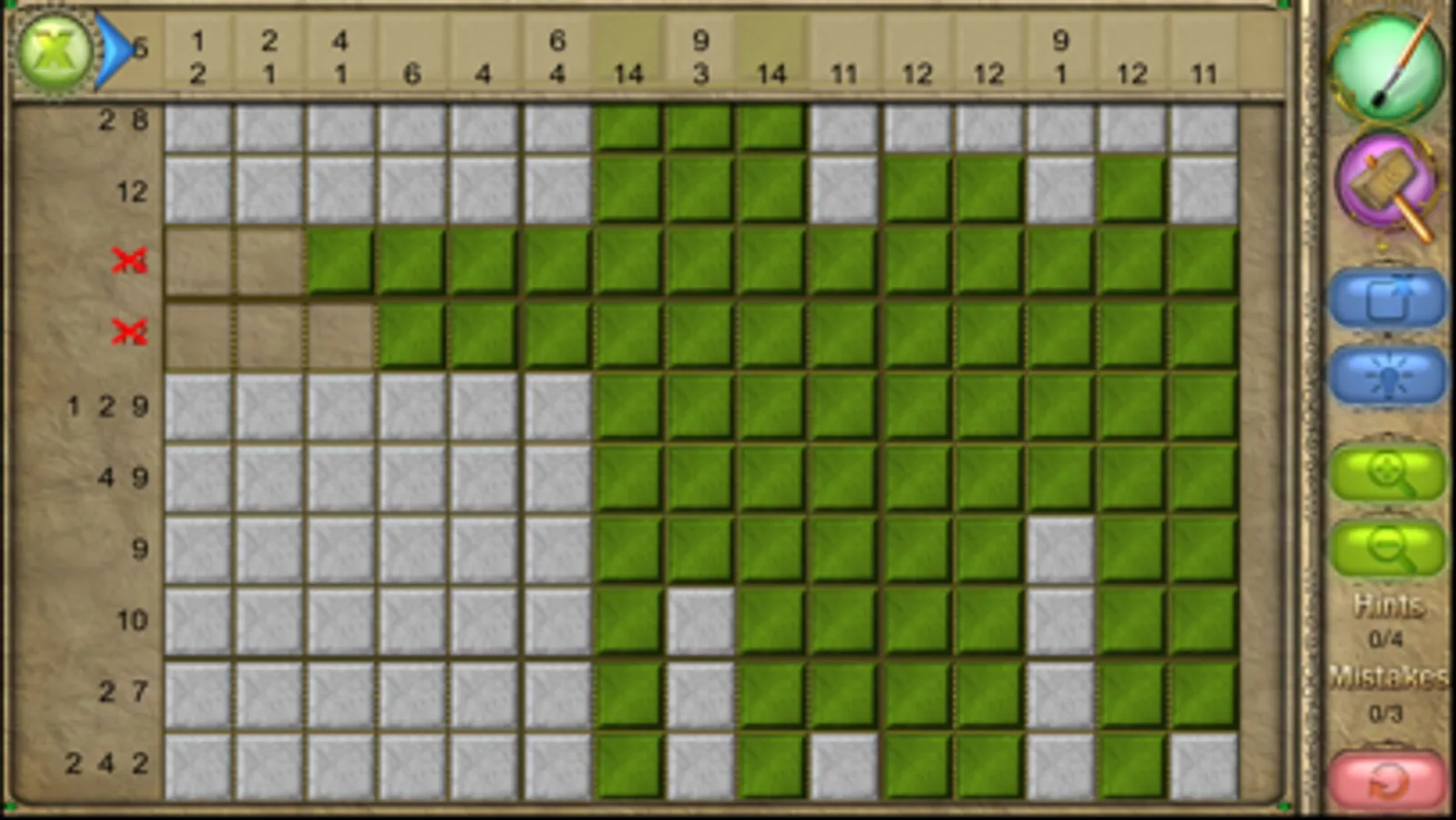 An old Japanese logic puzzle takes on a new look with FlipPix Art! Touch tiles to paint them or break them to form colorful components of paintings. The goal is to use logic to determine which tiles should be filled to reveal a hidden picture.