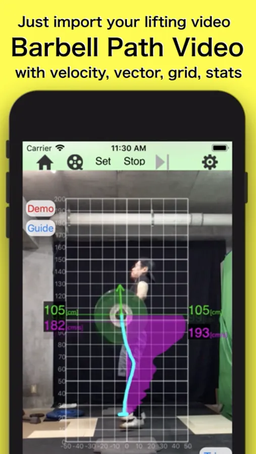 7. Tracking will be started and the bar path will be drawn. The movie and screenshot of bar path are saved in Photo Book.(In paid version only)