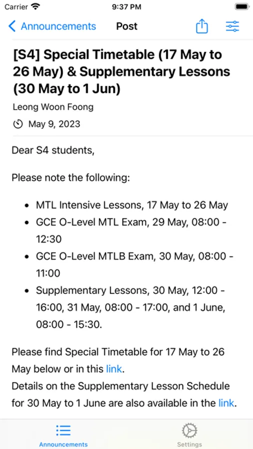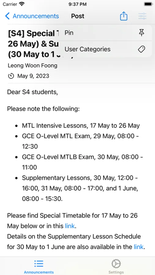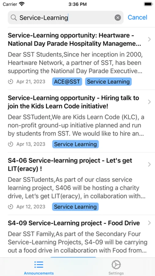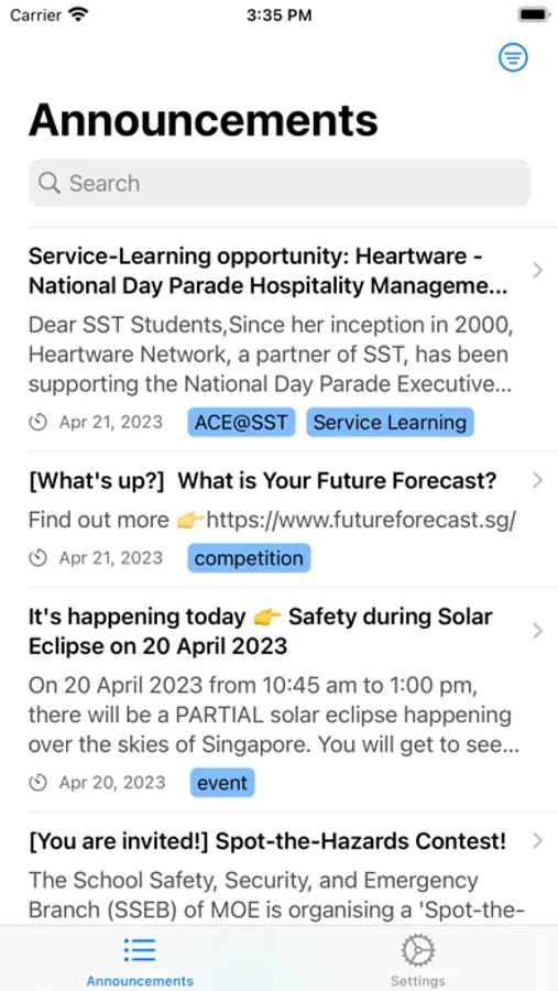 SST Announcer is an app built for students and staff of the School of Science and Technology, Singapore, to stay updated with the school’s announcements with ease and convenience on their devices. The app allows users to browse, pin and share important announcements made by the school. Furthermore, the app also sends notifications to students whenever a new announcement is posted. This helps to ensure that students are kept updated with the latest information from the school. It also allows them to sign up for competitions and programs efficiently.
