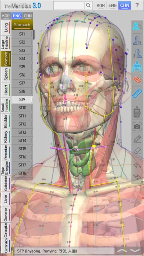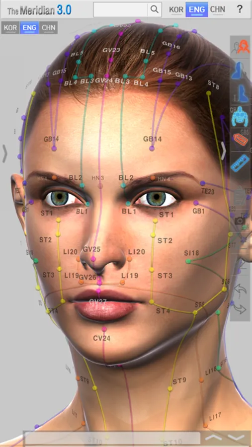 It allows easy comparison of the 12 Meridians Acupuncture Poinst, Governor Vessel (GV) Acupuncture Points, Conception Vessel(CV) Acupuncture Points and its superficial Meridians on male or female 3D model.