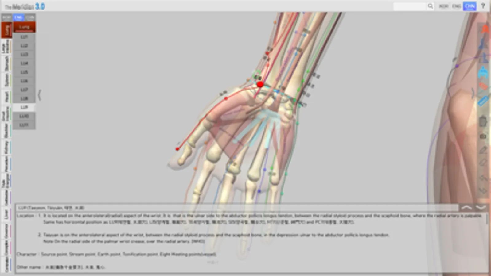 ‘The Meridian 3.0’ was created by integrating the 12 Meridians Acupuncture Points, Governor Vessel (GV) Acupuncture Points and Conception Vessel(CV) Acupuncture Points with its superficial Meridians together as one product on a 3D human model.