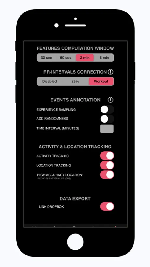 - RR-intervals correction can be enabled to prevent ectopic beats or artifacts from affecting HRV features