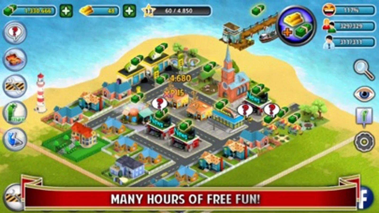 In City Island you will build houses for your citizens, decorations and community buildings to make them happy, and create jobs so you can earn money from your happy citizens.