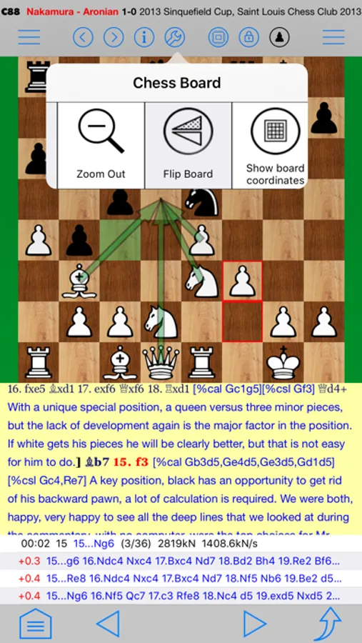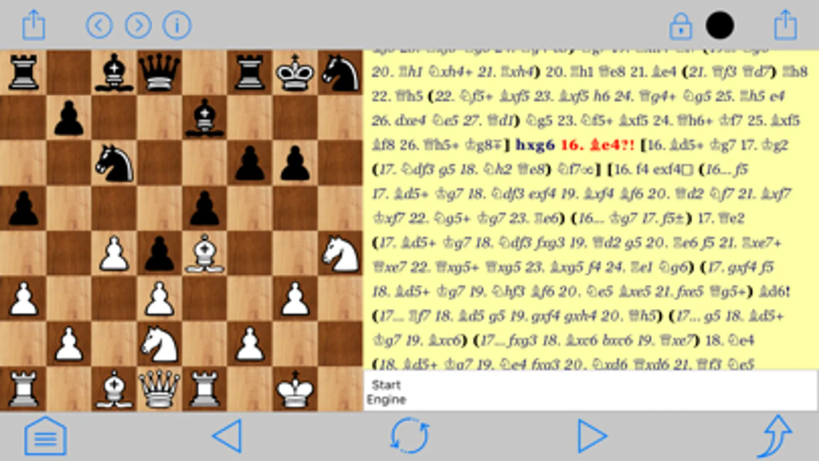 • Analyze games with Stockfish 16 Engine with or without the support of the Neural Networks (up to 5 lines of analysis simultaneously) and see the results also through the Engine Evaluation Bar.