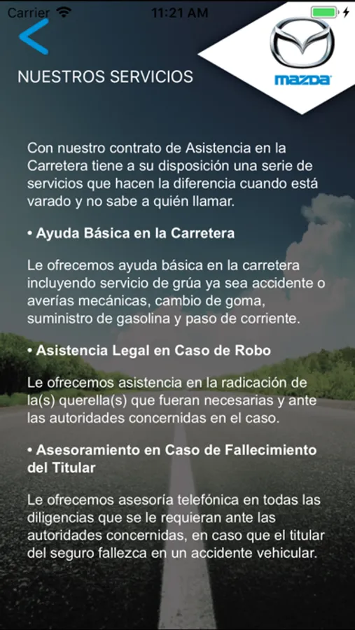 Asistencia Total Mazda, es un servicio completo de asistencia en carretera que cuenta con la más alta tecnología para ofrecer un servicio rápido y confiable. Nuestro centro de servicio está listo para atenderle las 24 horas del día los 365 días del año.