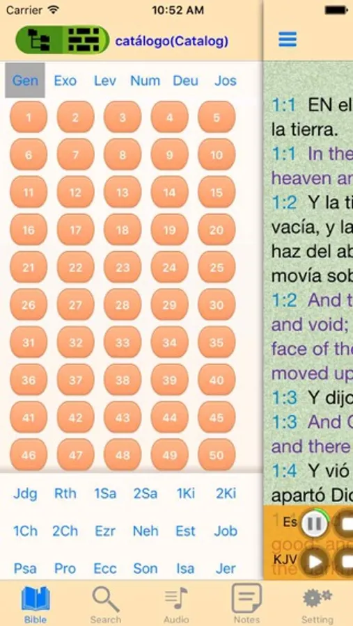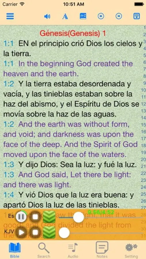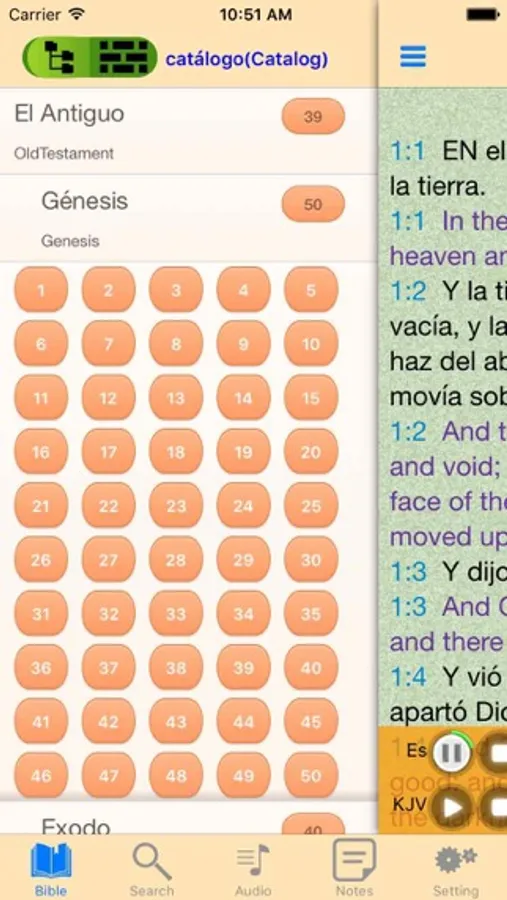 Holy Bible in Spanish and English. You can learn the bible by contrast.