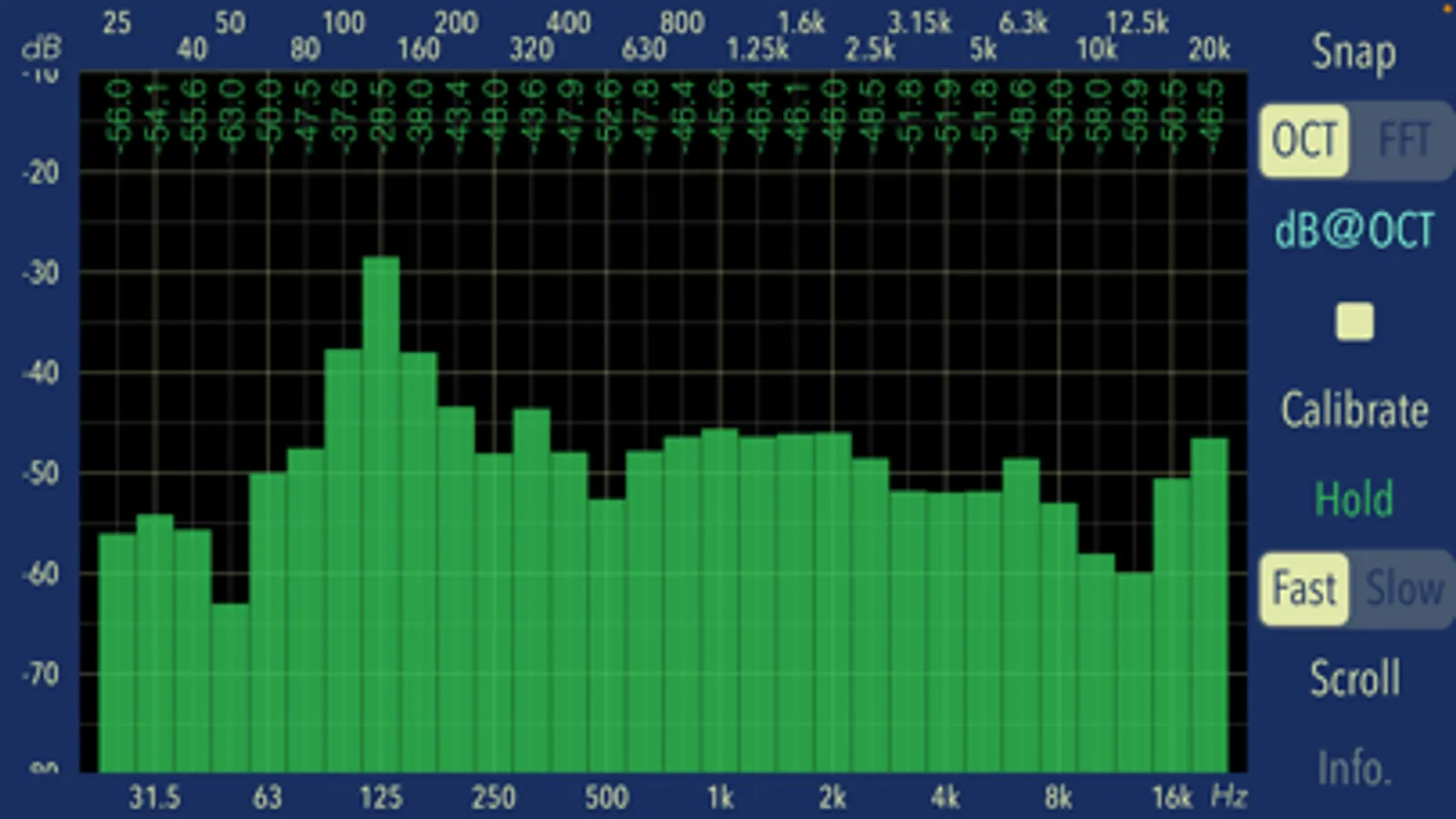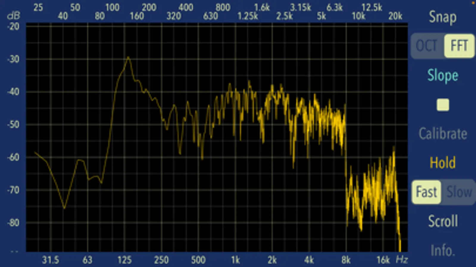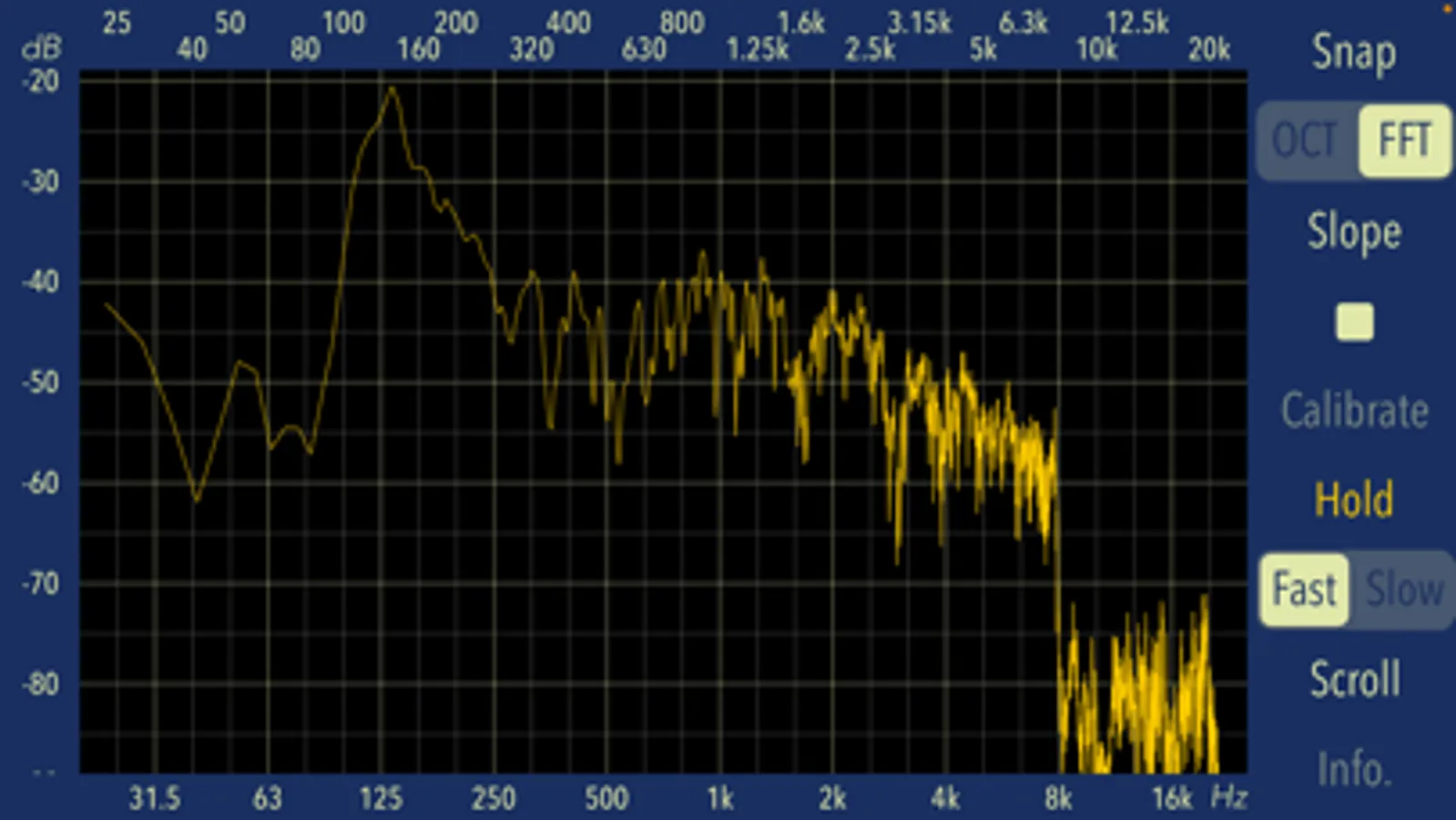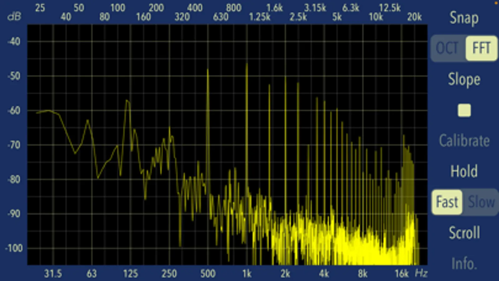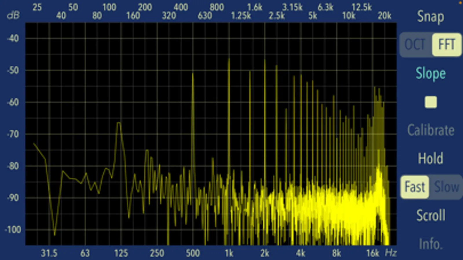 - Frequency display : 20 - 20000 Hz (X-axis)