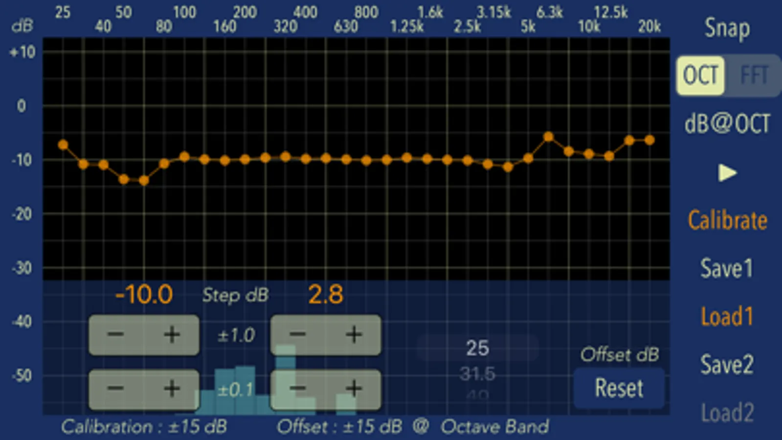 - Calibration function at OCT mode. (Calibrate) : 1/3 octave band offset and overall offset setting.