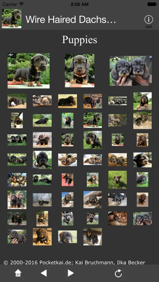 Wire-haired Dachshunds dogs are popular and are also used for hunting. This program displays over 500 photos of these dogs sorted by puppies, males,