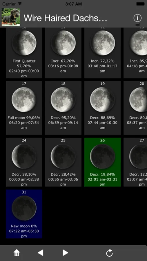 females, seniors, from nature, etc. .. The app includes a calendar view showing phases of the moon as a monthly overview to use for hunting. For dachshund owners, Dachshund lovers and hunting enthusiasts.