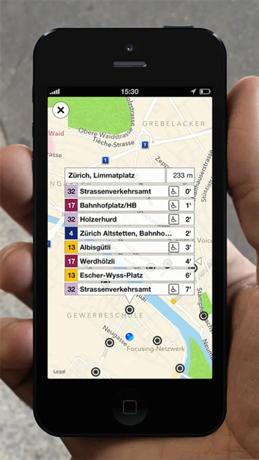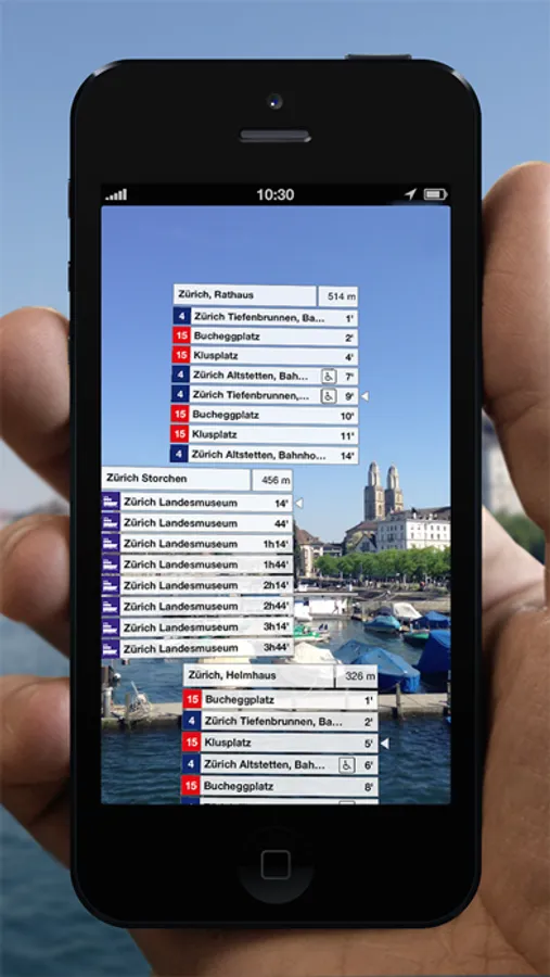 No typing necessary: simply hold your iPhone in the direction of the desired station or stop and the respective destination board will be displayed.