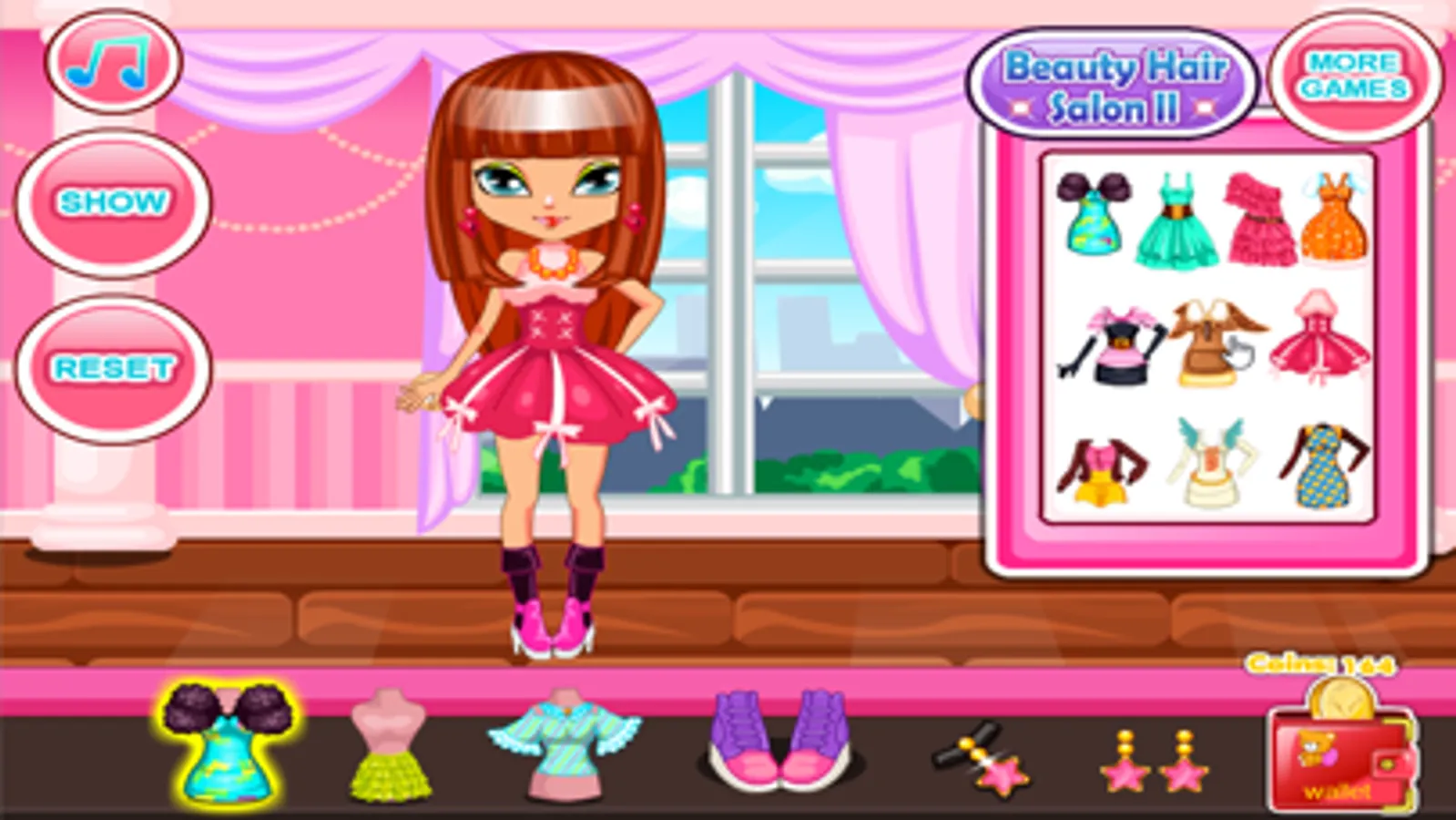 - CHOOSE between different clothes and accessories including shirts, skirts, dresses, shoes, necklaces, and earrings.