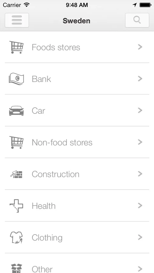 Butiker och ställen hittas via kategorier och med sökning på namn, adress och nyckelord. Sök i din närhet, eller nära en angiven plats, gata, shoppingcenter eller butik.