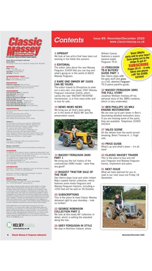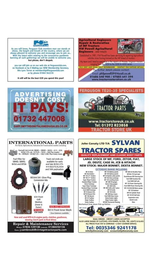 Building on the reputation of the great Grey Fergie, which saw more than half a million built, Massey Ferguson, with their red tractors, dominated the tractor market in Britain and many other places from the late 1950s to the 1970s. We celebrate this hey-day but also look at more modern and older tractors linked to the Ferguson name. From restorations to recollections and also hundreds of readers free-ads there’s something for everyone here.