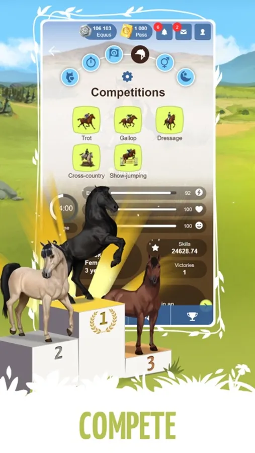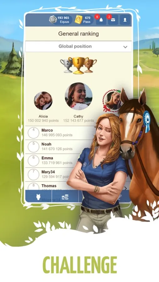 Challenge your friends and the community to reach the top of the leaderboards in the different categories (General ranking, best breeders, best horses, best equestrian centers....).